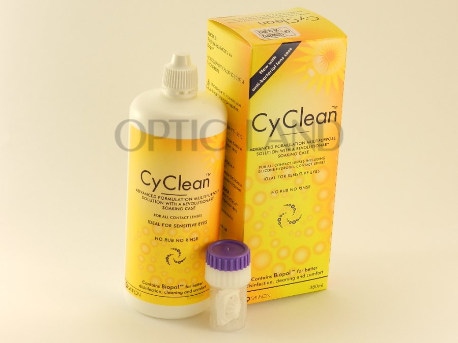 Універсальний розчин по догляду за всіма типами контактних лінз. Підходить для чутливих очей. Містить BioPol для більш ефективної дезінфекції, очищення та підвищеного комфорту. Відмінне співвідношення з ціною, робить розчин CyClean незамінним помічником. Дуже висока біоцидний ефективність проти широкого спектру патогенних мікроорганізмів. Призначений для всіх типів контактних лінз, включаючи силікон-гідрогелеві.