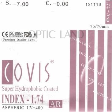 Для создания оптической линзы Covis 1,74 были использованы дорогостоящие, высококачественные технологии, которые позволяют уменьшить вес линзы и толщину. Высокоиндексные линзы имеют много преимуществ. Оптические линзы с высокими индексами намного легче от минеральных линз, также обладают высокой прочностью. За счёт дополнительного твёрдого покрытия линзы Covis 1,74 менее подвержены к механическим воздействиям.